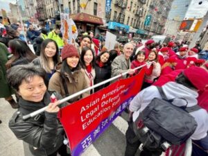 On February 12th, members of Barton’s Pro Bono Team volunteered with the Asian American Legal Defense and Education Fund (AALDEF) to march in the 25th annual Lunar New Year parade in Chinatown. Thousands turned out to celebrate the Year of the Rabbit and enjoy vibrant dance performances, colorful costumes, floats, confetti, and music. Barton is proud to continue its volunteer work with AALDEF and help support its mission to protect and promote the rights of Asian Americans.